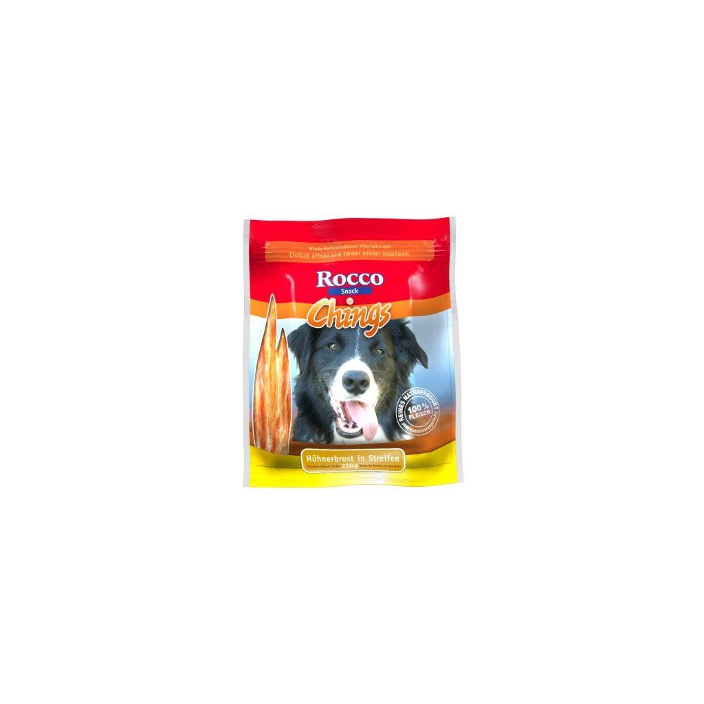 Kvalitní kuřecí maso je nízkotučné a velmi dobře stravitelné. Díky tomu jsou plátky vhodné i pro citlivé nebo alergické psy. S Rocco Chings sušeným masem poskytnete Vašemu pejskovi chutný pamlsek z čistého masa, bez obsahu barviv, konzervačních látek a aroma. Sušené maso Rocco Chings je vyrobeno ze 100 % jemného masa, které je již předem porcované.