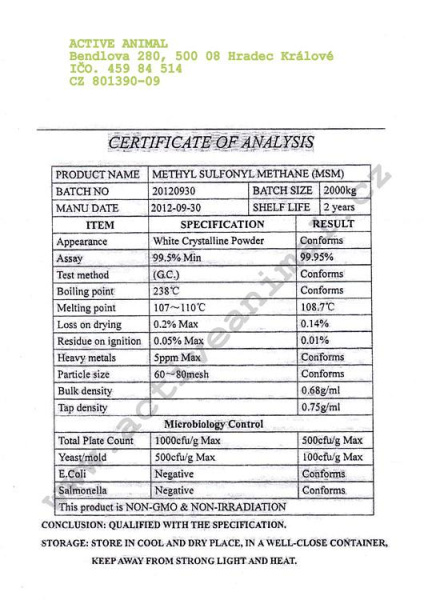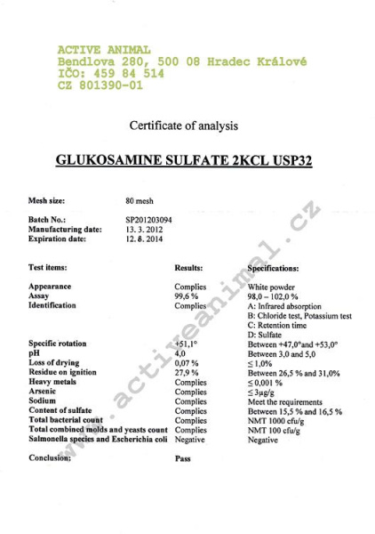 Ze surovin, které nabízíme v našem e-shopu, vyrábíme i přípravek ARTICULUS, který byl kontrolován a schválen Ústavem pro státní kontrolu veterinárních biopreparátů a léčiv v Brně.